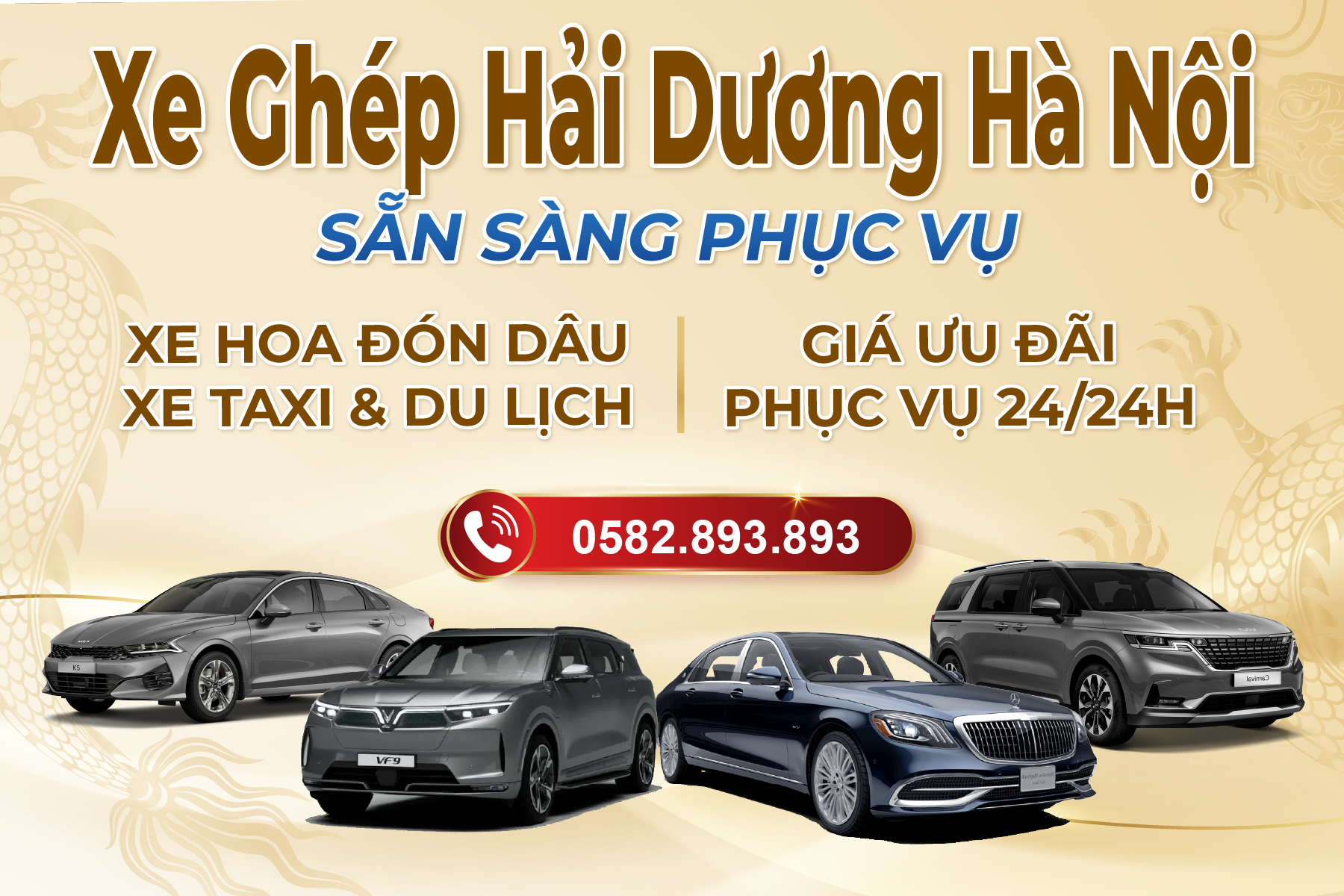 Gọi trực tiếp 0582 893 893 hoặc đặt xe qua tin nhắn